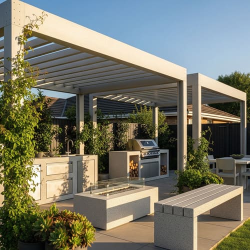 Weather-resistant structures creating stylish shaded outdoor spaces.