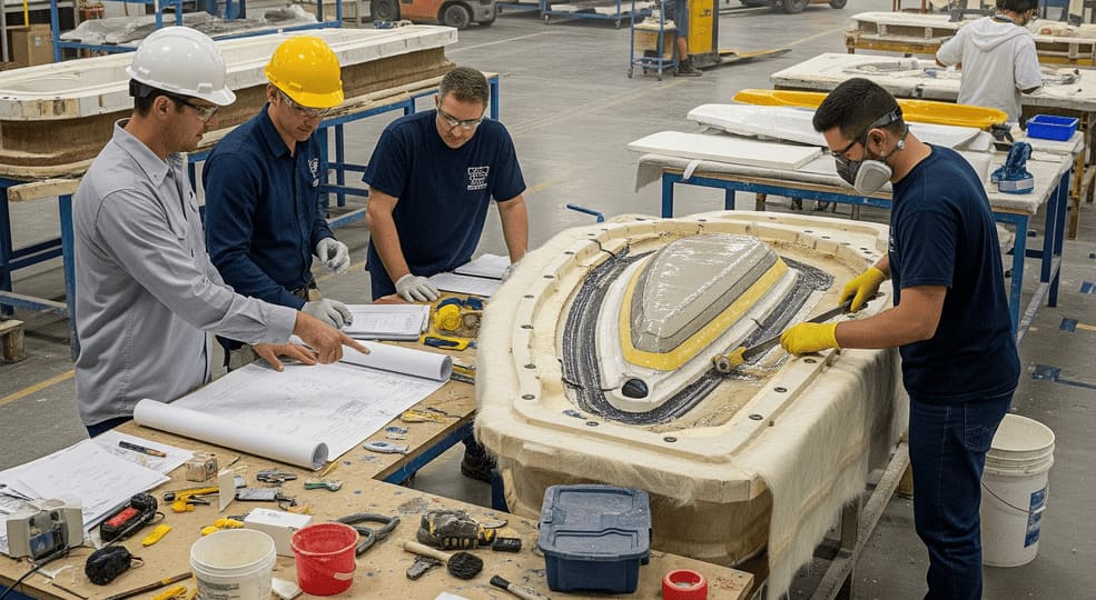Precision fabrication of fiberglass products using advanced techniques, tailored to meet unique architectural and structural requirements.