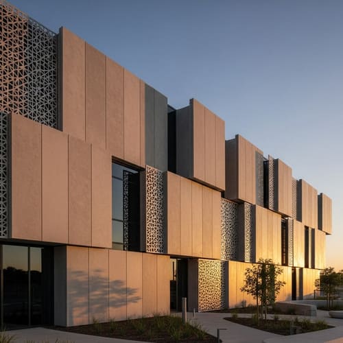 Durable and lightweight façade panels that enhance structural aesthetics and weather resistance.